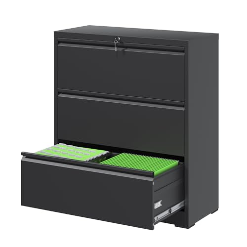 【Sturdy and Functional】 The 3 drawer file cabinet size:D15.75″*W35.43″*H40.39″, drawer size:D13.98″*W32.44″*H9.8″, each drawer can support up to 55 lbs. The lateral file cabinet is equipped with premium full-extension metal drawer slides, allowing for smooth and easy access even when fully loaded, making organization a breeze.